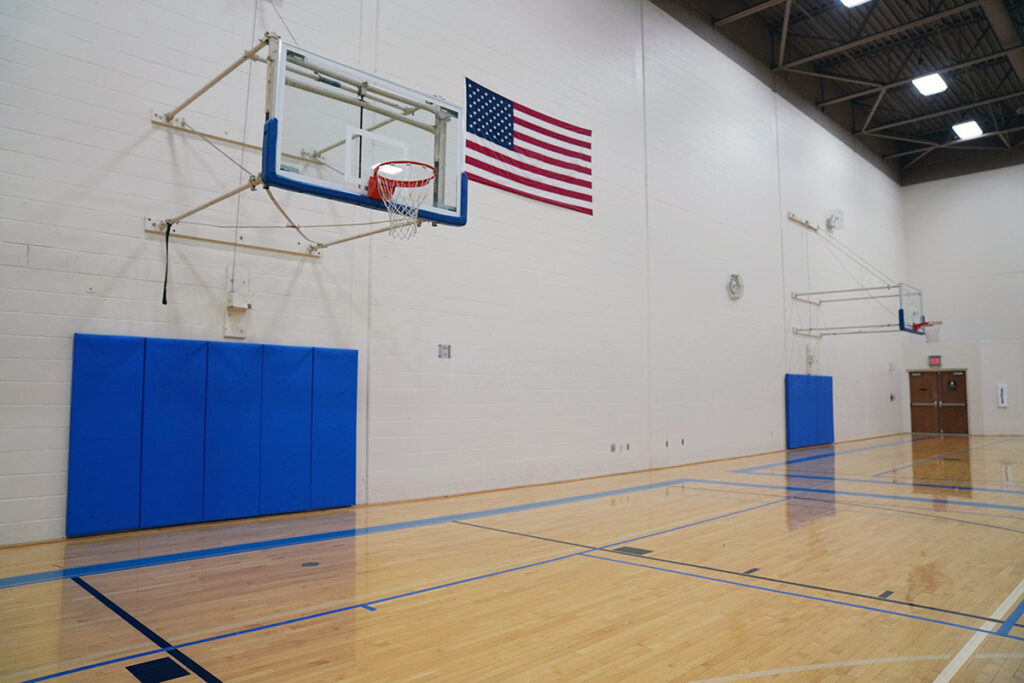 Full-sized gym perfect for basketball, volleyball, and open recreation. Also used for adult and youth sports leagues.